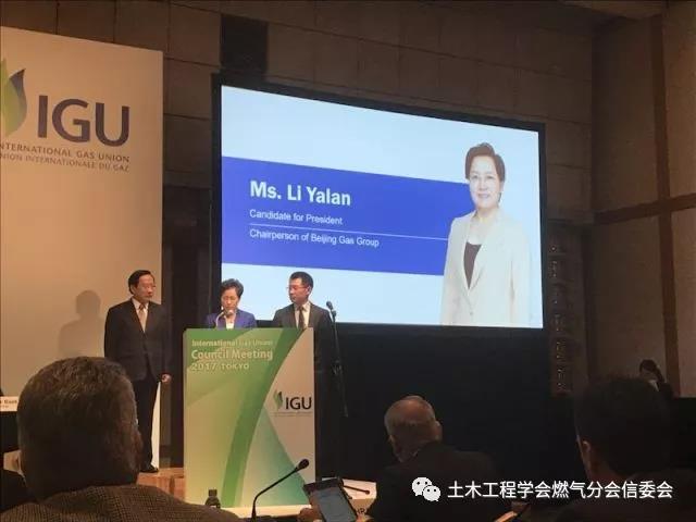 2017年10月26日下午,中国燃气学会(CGS)副理事长、北京市燃气集团有限责任公司董事长李雅兰女士,成功当选国际燃气联盟(IGU)2021-2024任期主席。同时,北京获得2024年第29届世界燃气大会(WGC)主办权。